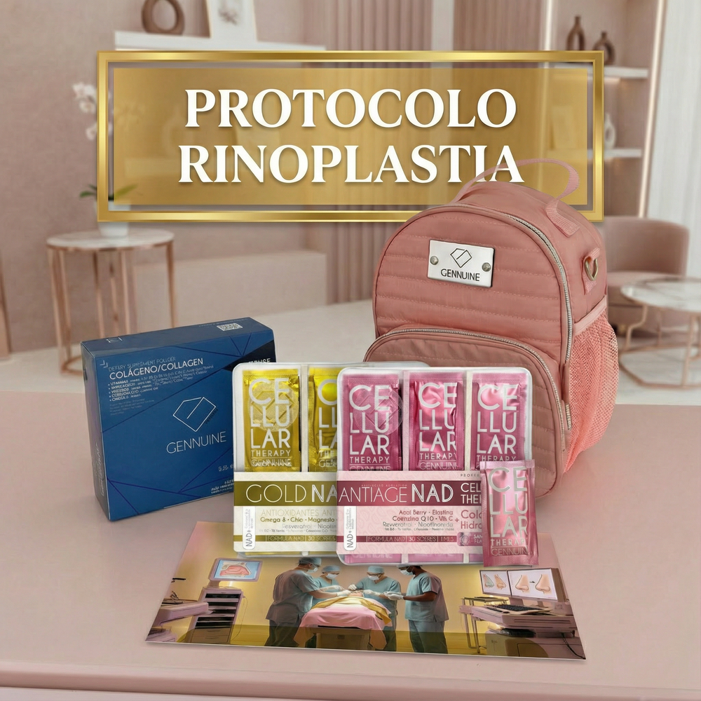 ¡Kit Post-Cirugía Gennuine con Antiage y Defense Premium y Gold NAD (4 meses de soporte) para una cicatrización y recuperación óptima. Incluye mochila térmica y guía de cuidado integral.